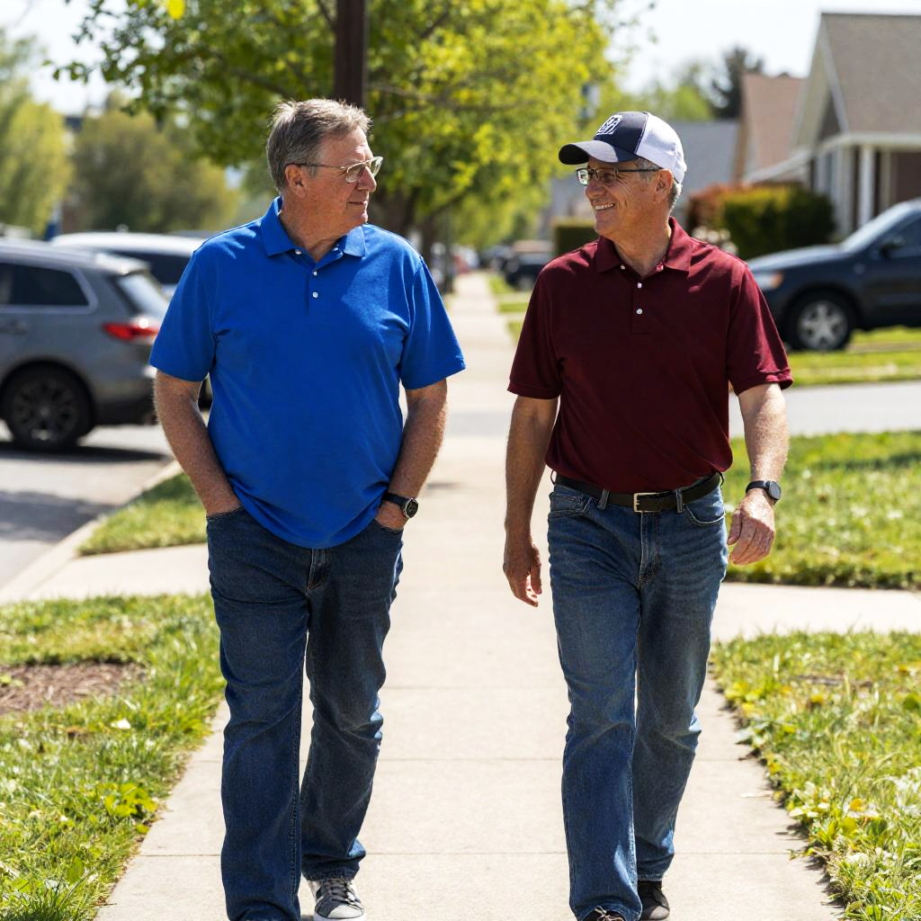 Men Walking Away from Monument in Sunlight