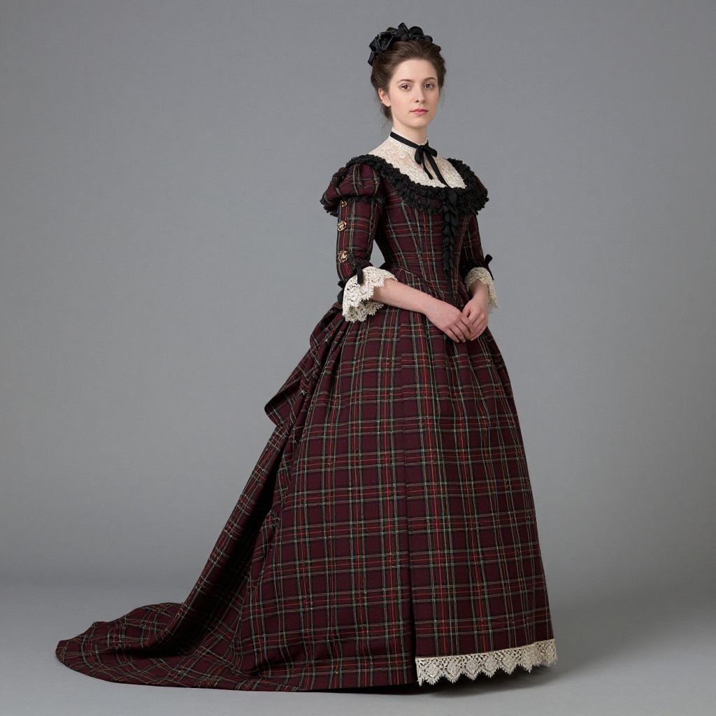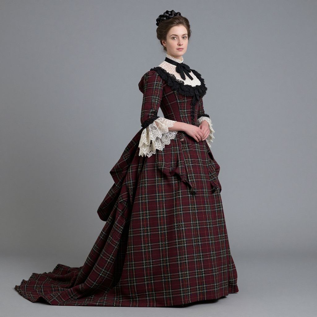 Victorian Burgundy Plaid Gown Woman
