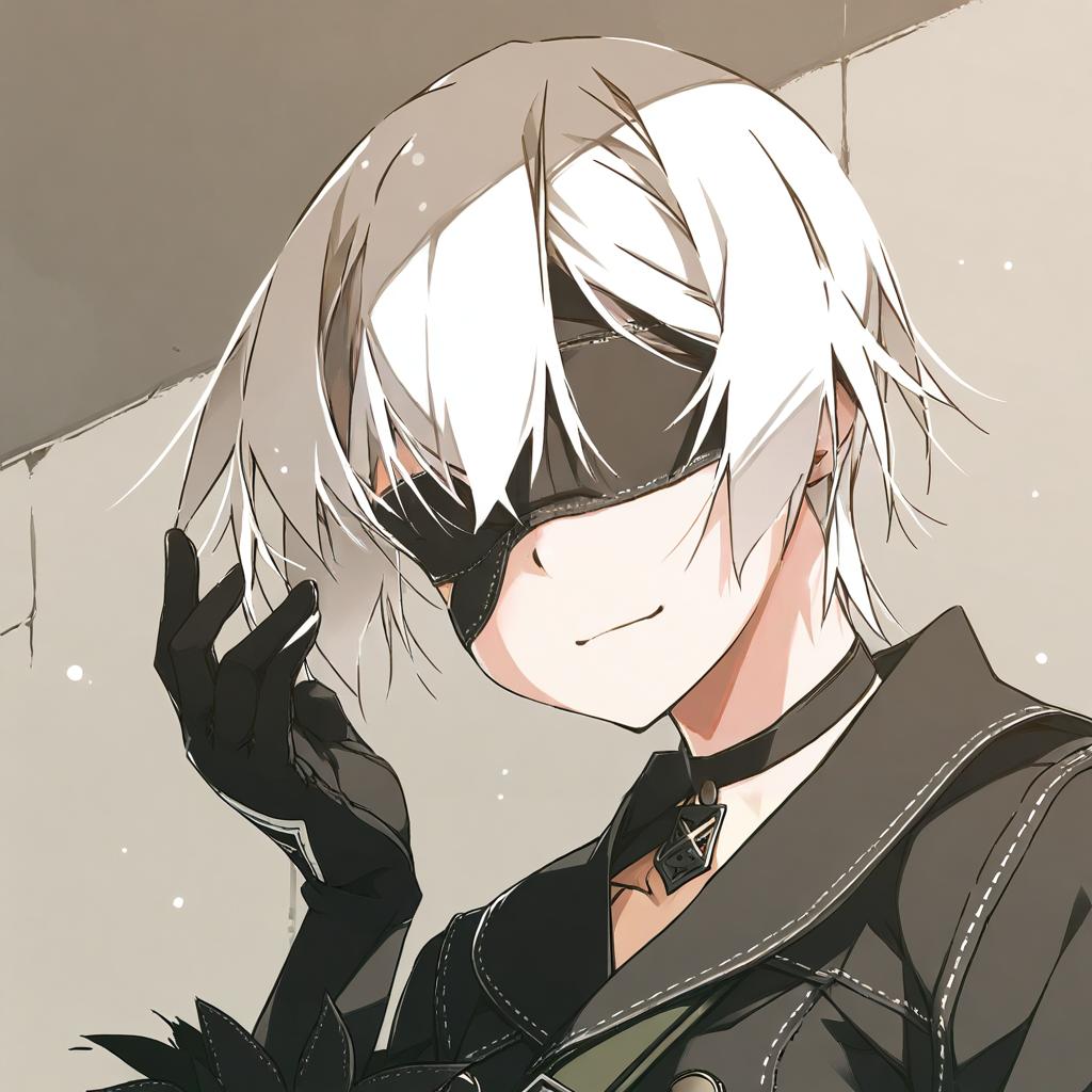 9s (nier:automata), nier (series), 1boy, white hair, short hair, black gloves, black choker, long sleeves, black blindfold, by artist shikei, animagine