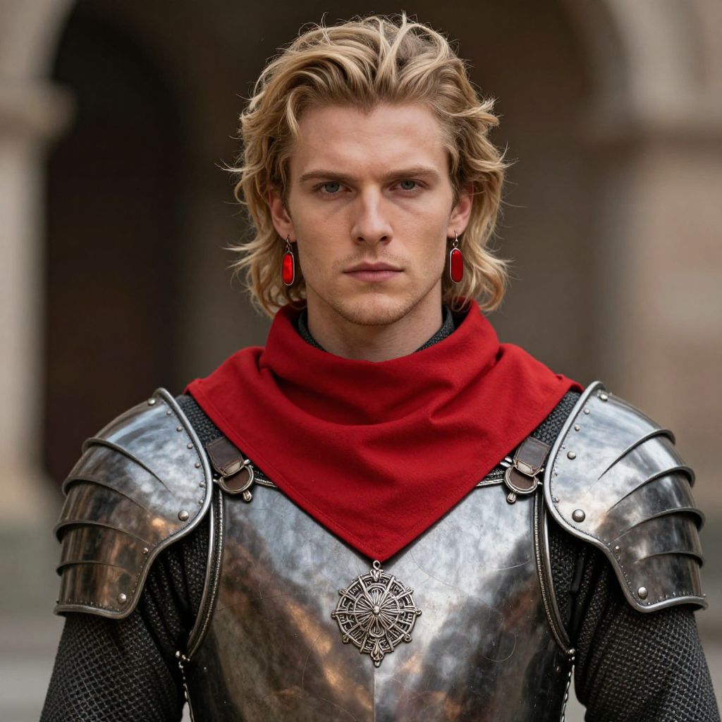 Blonde Male in Regal Red Coat