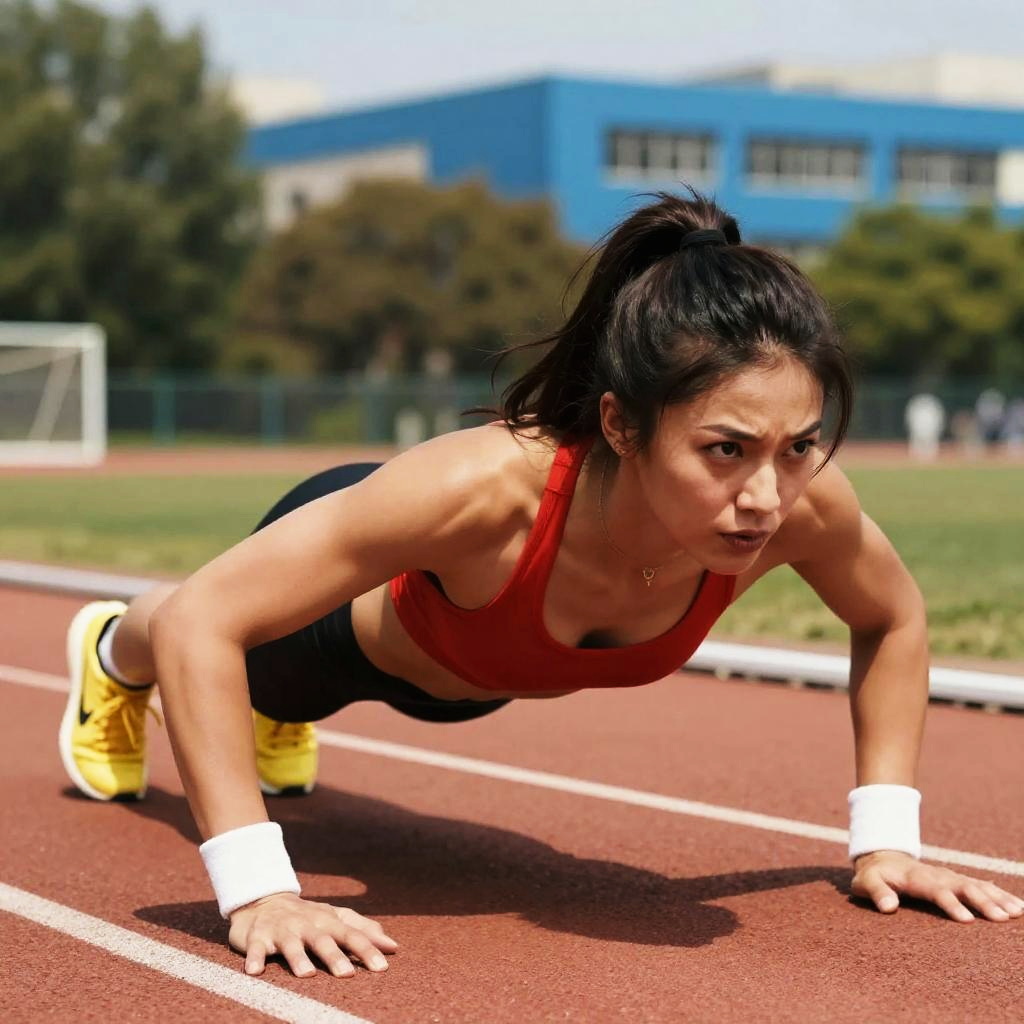 Fit Woman Crawling on Track Field
