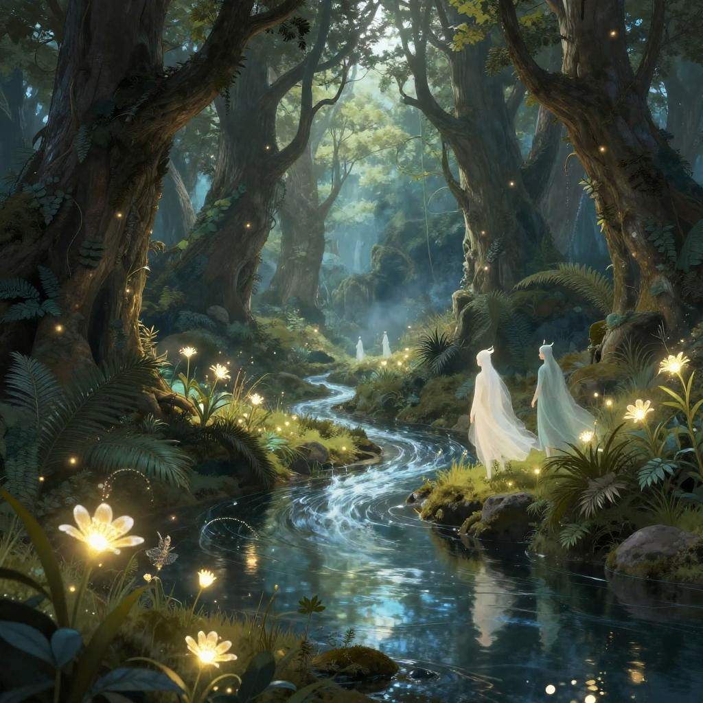 Random prompt: an enchanted forest filled with glowing plants and ethereal wildlife, twisting vines and ancient ruins scattered around, random prompt symbols carved into stone, magical and mystical atmosphere, rich textures.
