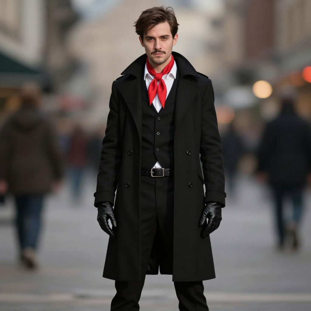 Man in Stylish Villain Costume with Red Ascot