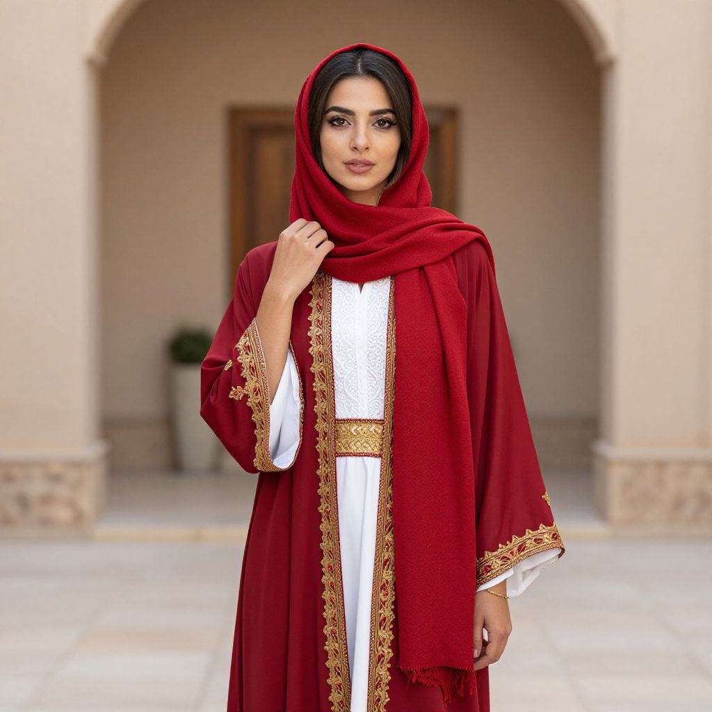 Traditional Arab Woman in Red Dress