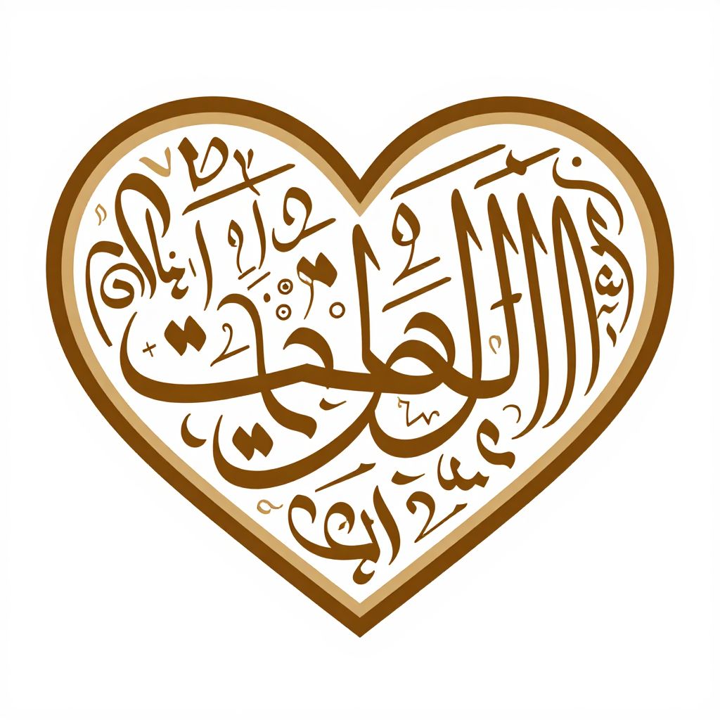 Digital artwork of a heart-shaped Arabic calligraphy with brown outlines, featuring elegant, flowing script on a white background.