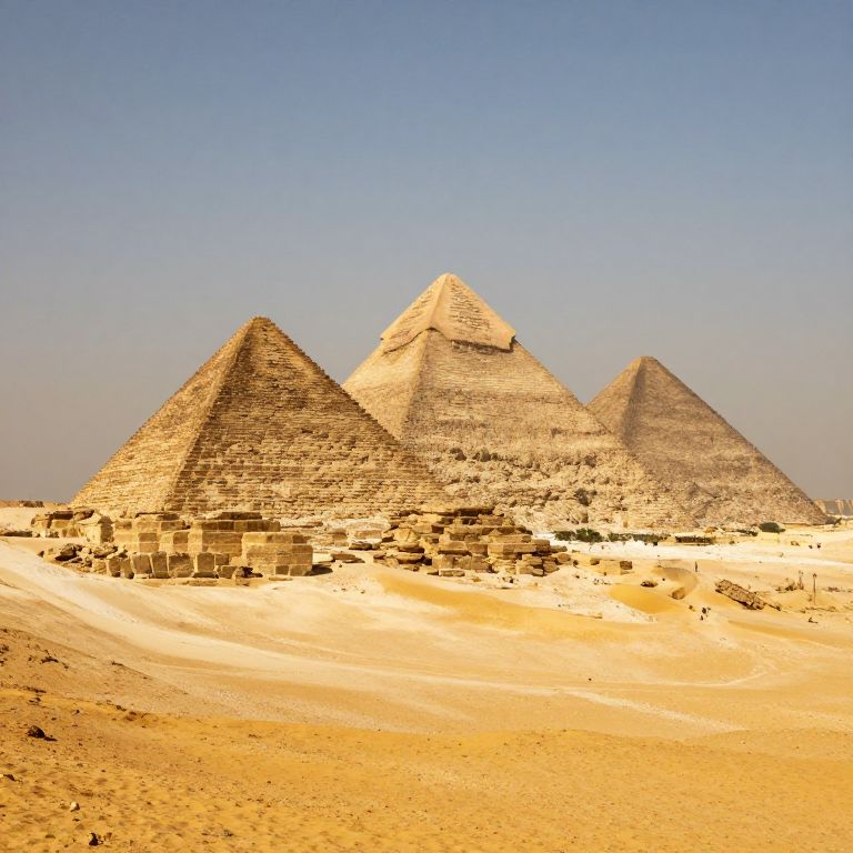 In the hushed embrace of the desert, ancient pyramids stand as silent sentinels, their weathered stones whispering tales of forgotten empires and the enduring spirit of humanity, while the golden sands cradle whispers of time's relentless march and the quiet resilience of life.