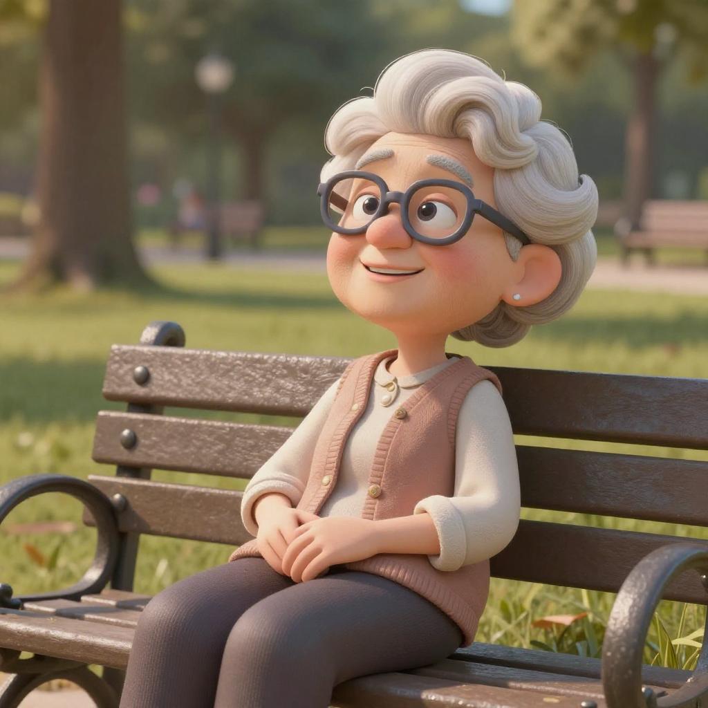 Pixar-Style Waist-Length Grandmother Portrait Cinematic Hyperdetailed