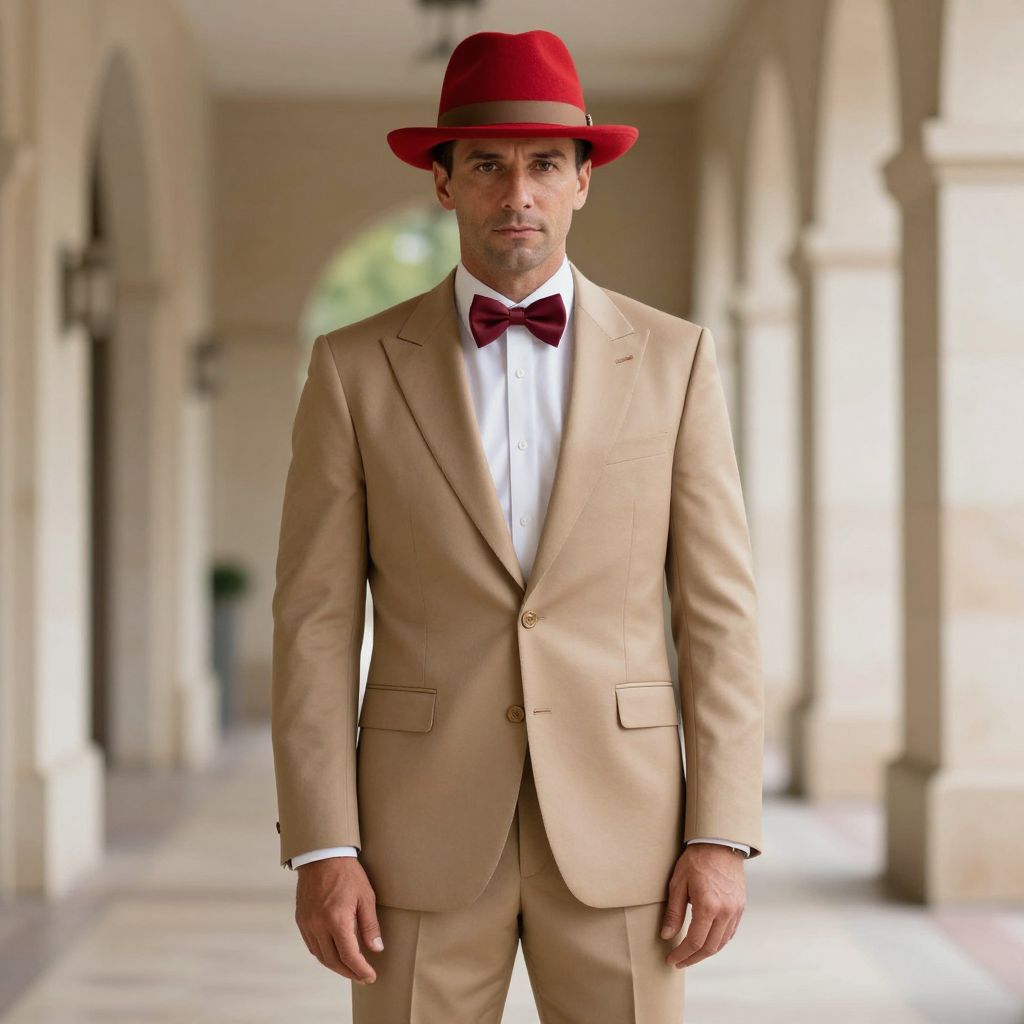 Dapper Man in Tan Suit and Red Hat