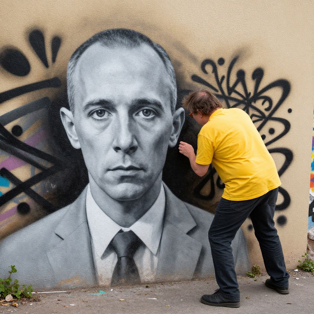 Man Graffitiing Wrinkled Self Portrait