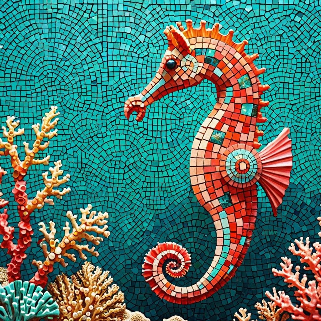 A detailed digital artwork featuring a graceful mermaid composed of a mosaic of small, colorful scales that form a fragmented, pixelated effect. The subject is portrayed in a fantasy style, with carefully arranged blocks creating depth and definition. The color palette is vibrant, including shades of aqua, silver, lavender, iridescent colors that reflect light, giving the artwork a luminous quality.