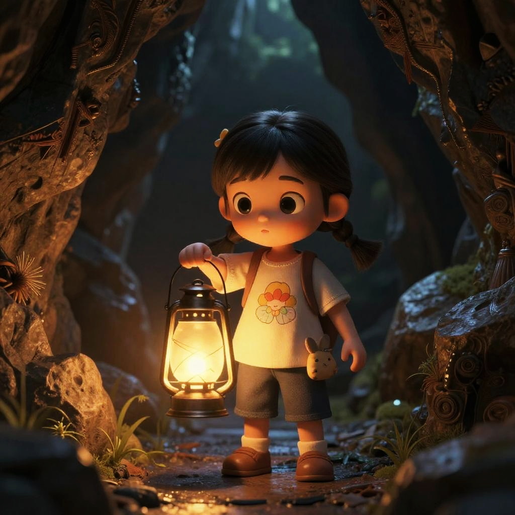 3D Girl on Swing in Magical Forest