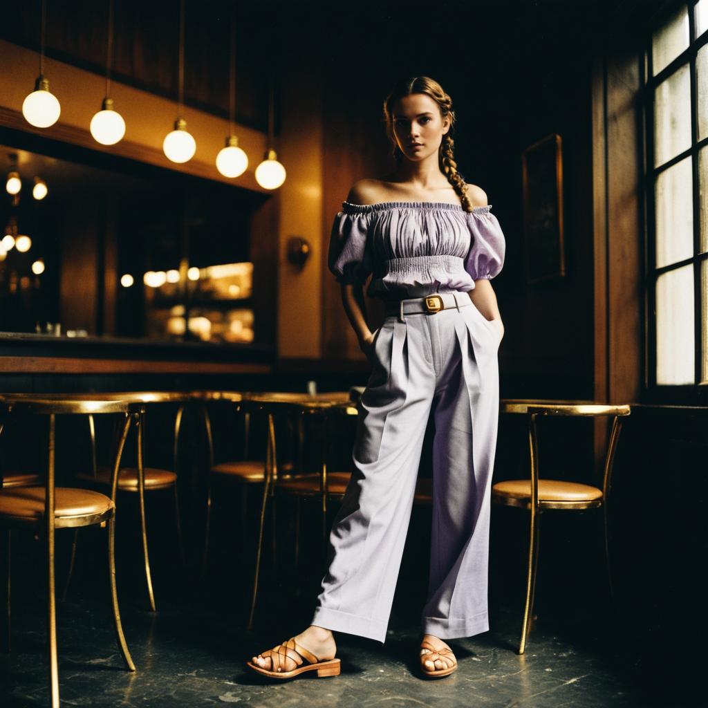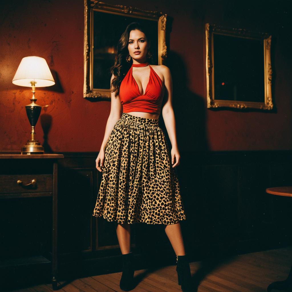 Stylish Woman in Silk Camisole and Leather Mini Skirt