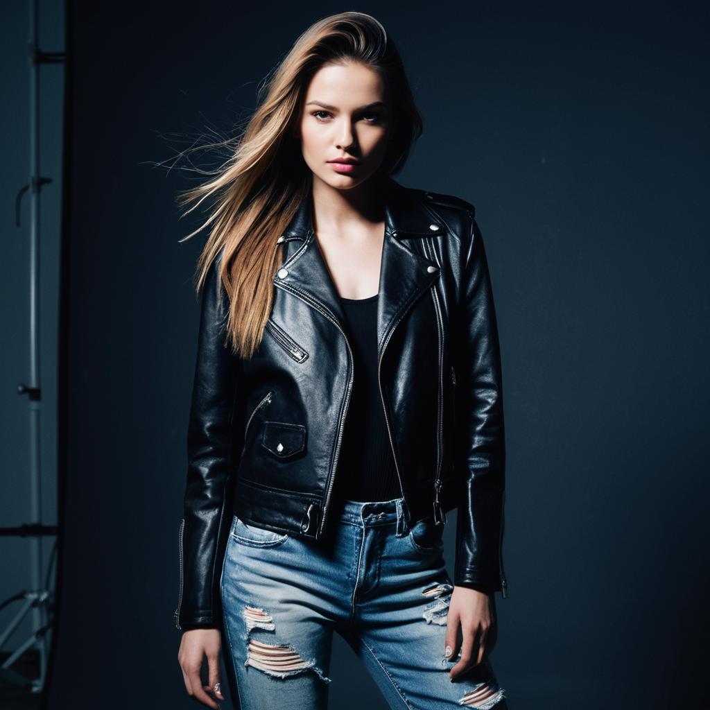 Long Layers hairstyle on woman, wearing lace blouse, in garden, captured in fashion editorial style with dramatic shadows.