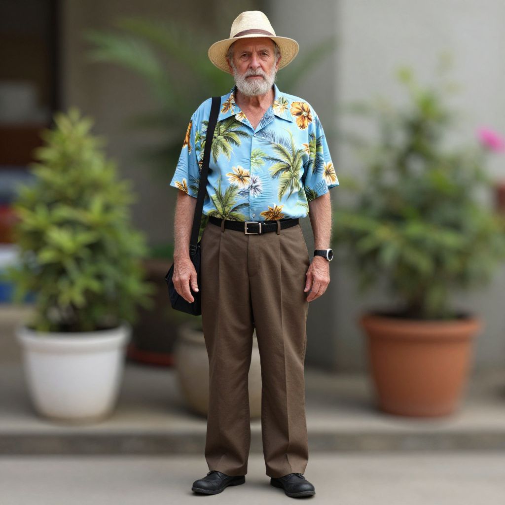 Elderly Man in Hawaiian Shirt Outdoors