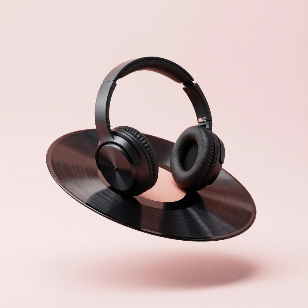 Minimalist Headphones on Floating Vinyl