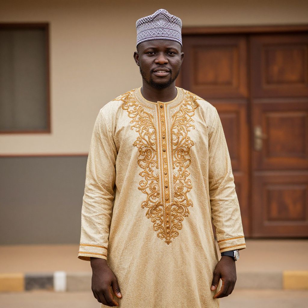 "African Attire Male Costume, man in a traditional african dress and hat"
