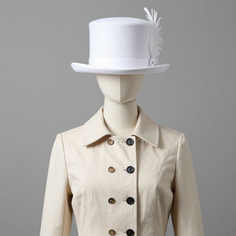 A pink feather hat displayed on a classic mannequin bust in an elegant boutique, ornate gold mirrors and chandeliers in the background, moody and luxurious lighting