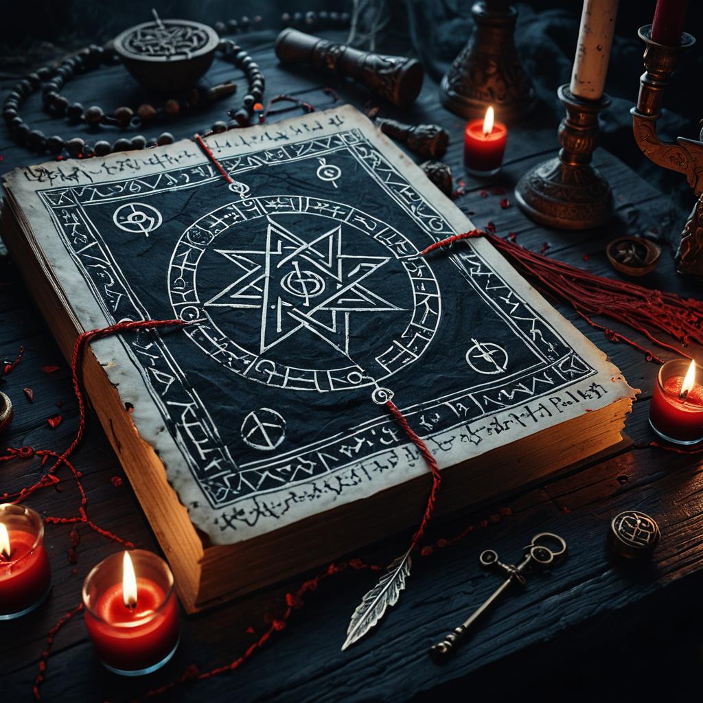 Occult Grimoire with Ancient Symbols and Ritual Candles