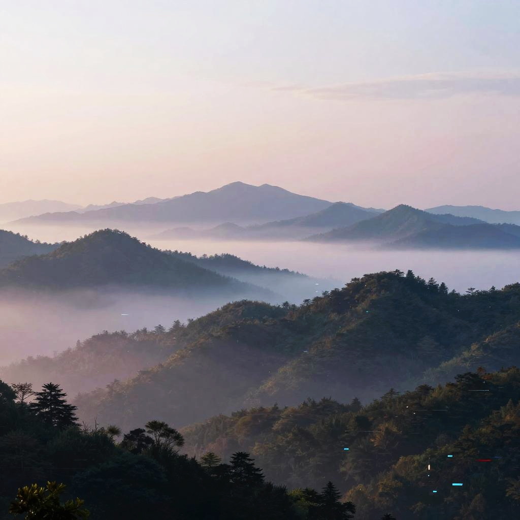 Convert image to AI art depicting a serene mountain landscape transformed into vibrant abstract colors and geometric patterns, blending natural beauty with futuristic digital aesthetics, high detail, smooth gradients, and dynamic lighting effects.