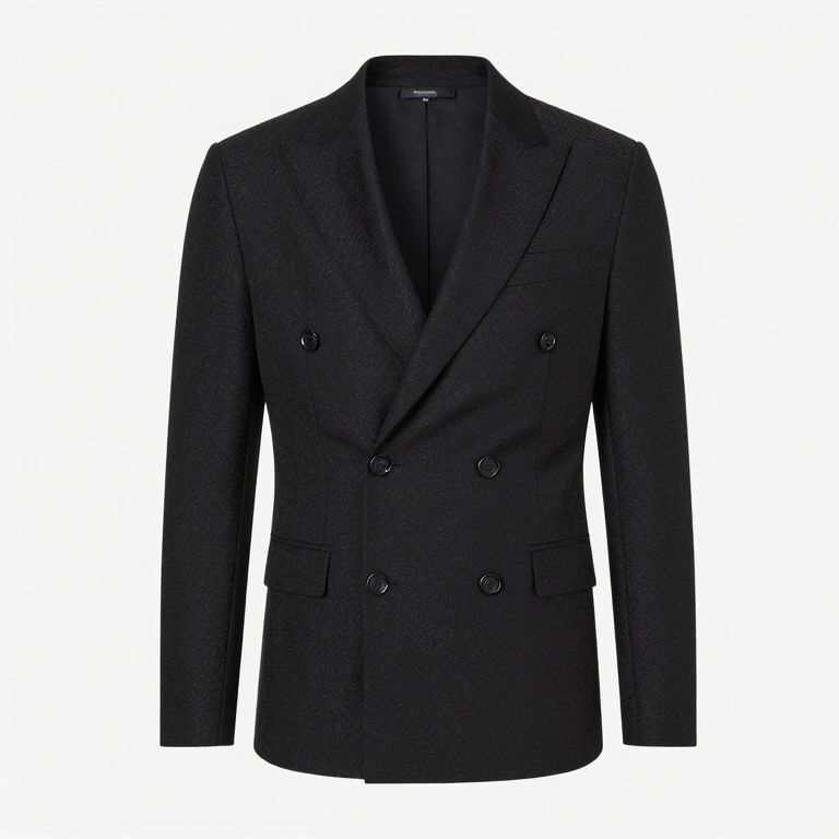 Black Flocked Jacquard Double Breasted Jacket