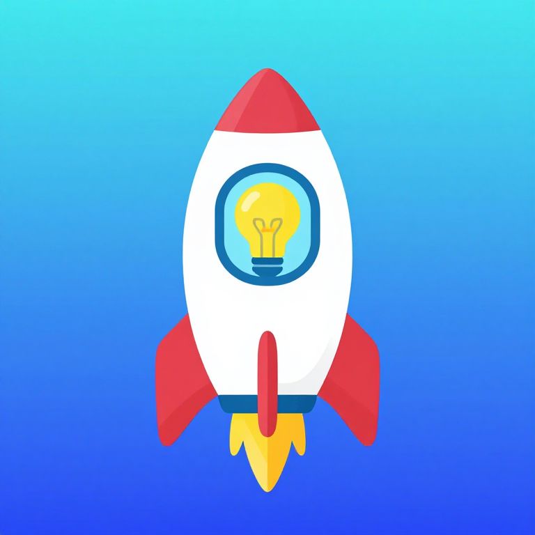 Pensive youtube icon, rocketship, the window of the rocketship is a vector lightbulb, going into dreams, creative, animated, gradient coloring,