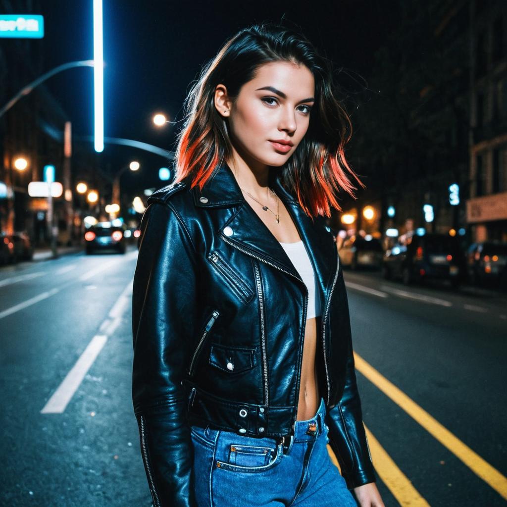 Fashion Model with Lavender Hair in Neon City
