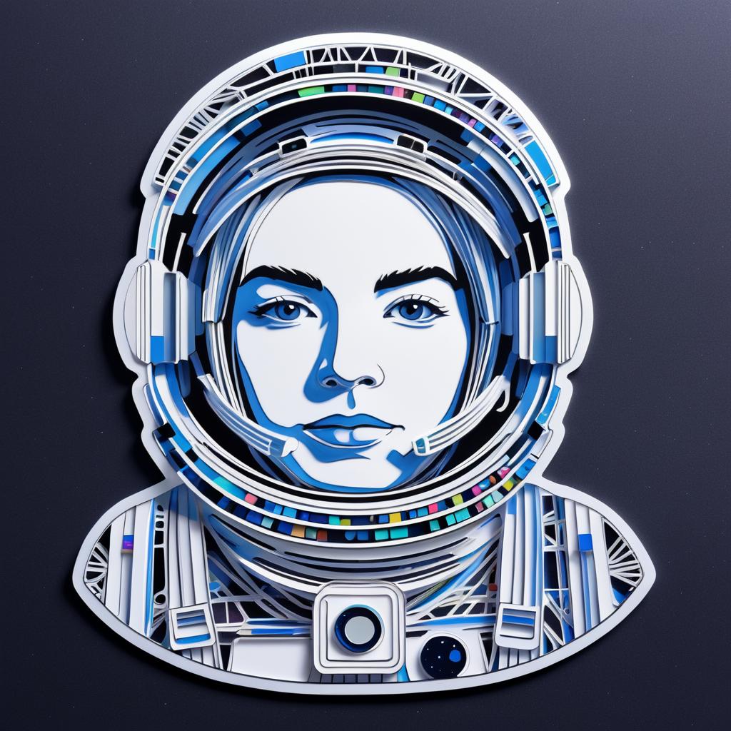 Laptop sticker of a portrait created entirely from paperclips arranged to form the features of an astronaut. The portrait uses paperclips for all color filling and shapes, resulting in a very detailed image.