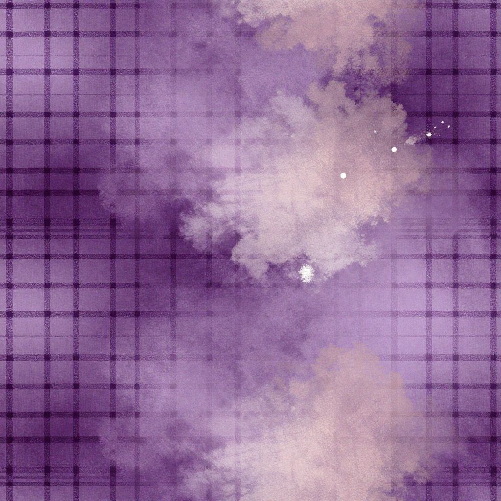 Digital art of a purple plaid background with white, cloud-like, textured light spots scattered across the center.