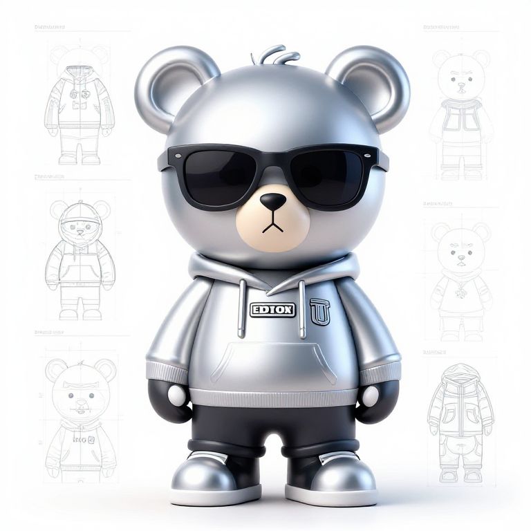 Space Planning arrogant cool cartoon bear wearing sunglasses and wearing hip hop style wear platinum edition,