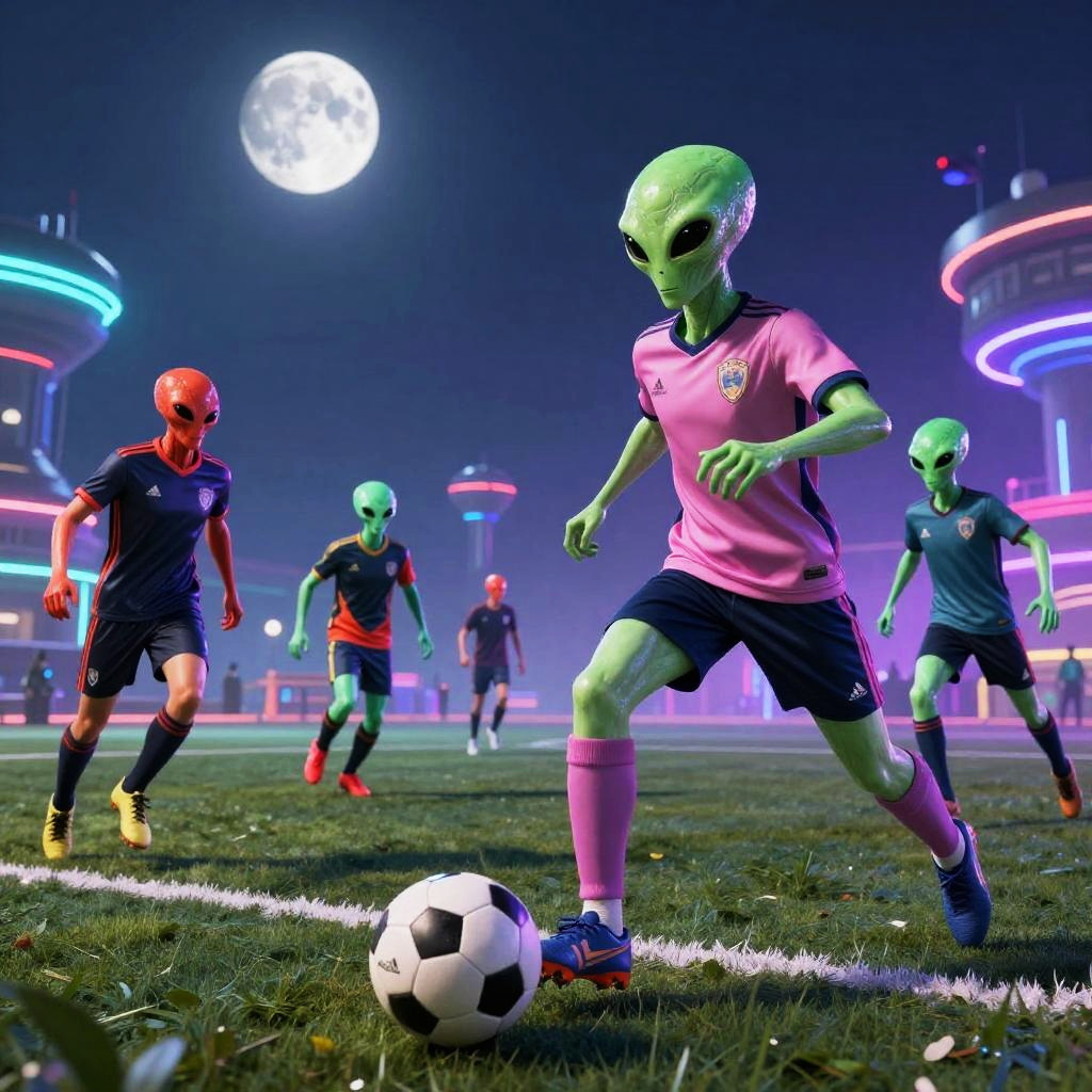 Alien Soccer Match in Sci-Fi Stadium