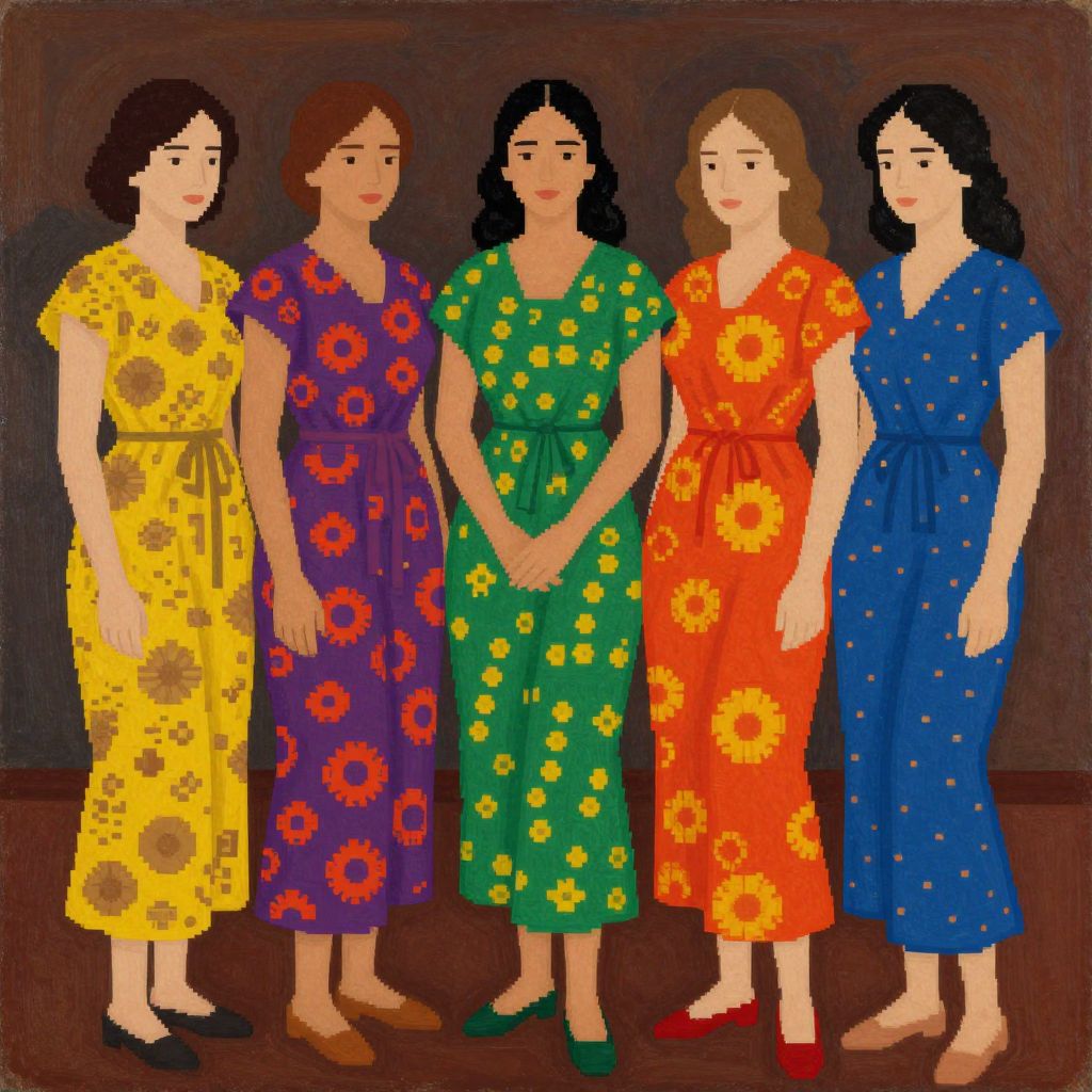 A group of women standing next to each other, a photocopy by manjit bawa, trending on pinterest, synchromism, vibrant colors, pixel perfect, rich color palette
