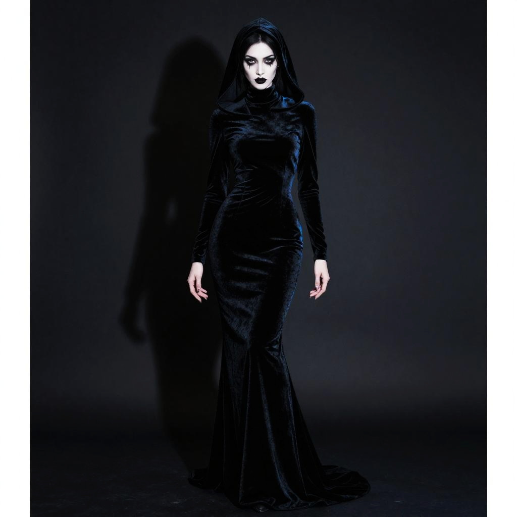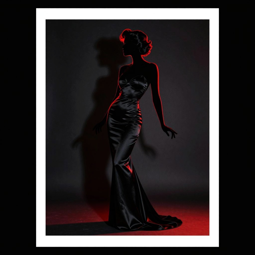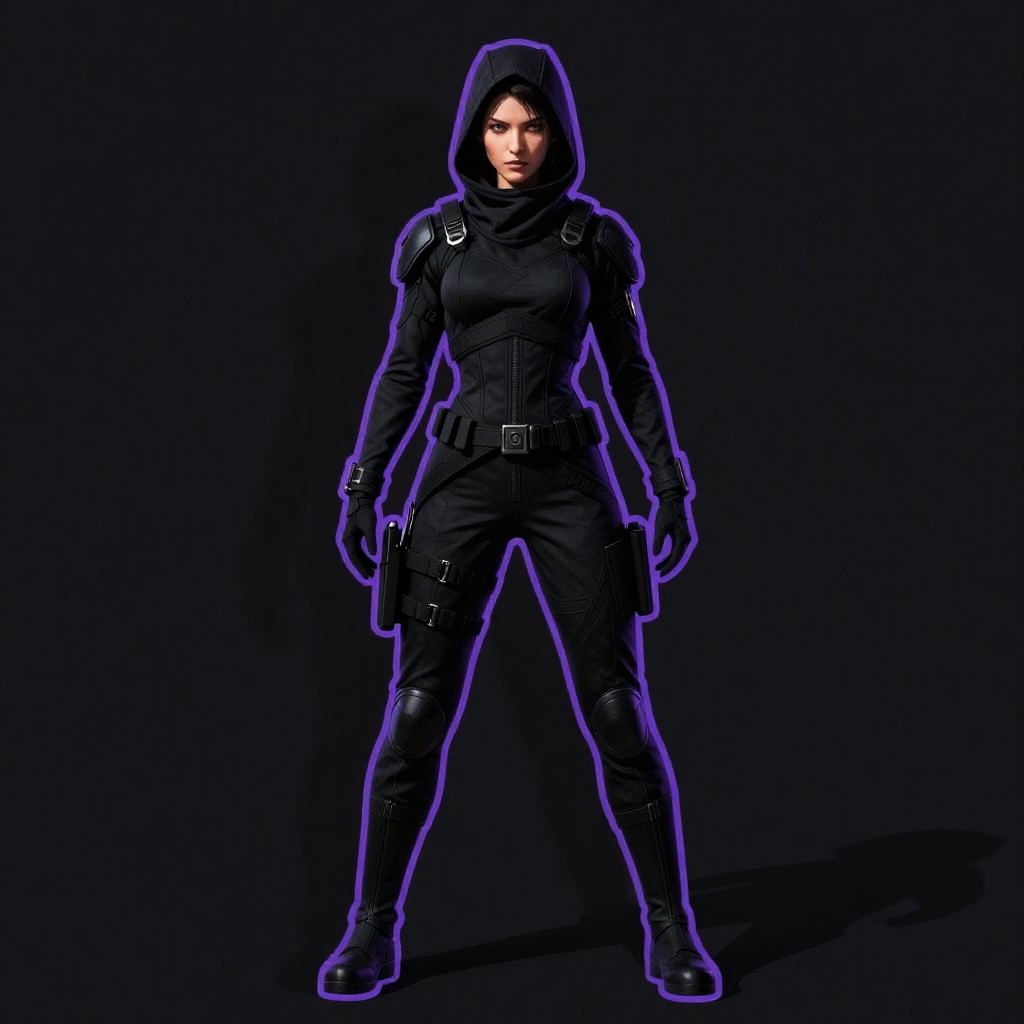 Poster, close-up, full body, shadow art with blue outline on a dark background, silhouette of a enigmatic black widow spider woman, tight black latex catsuit, high contrast, style inspired by Jean Baptiste Monge