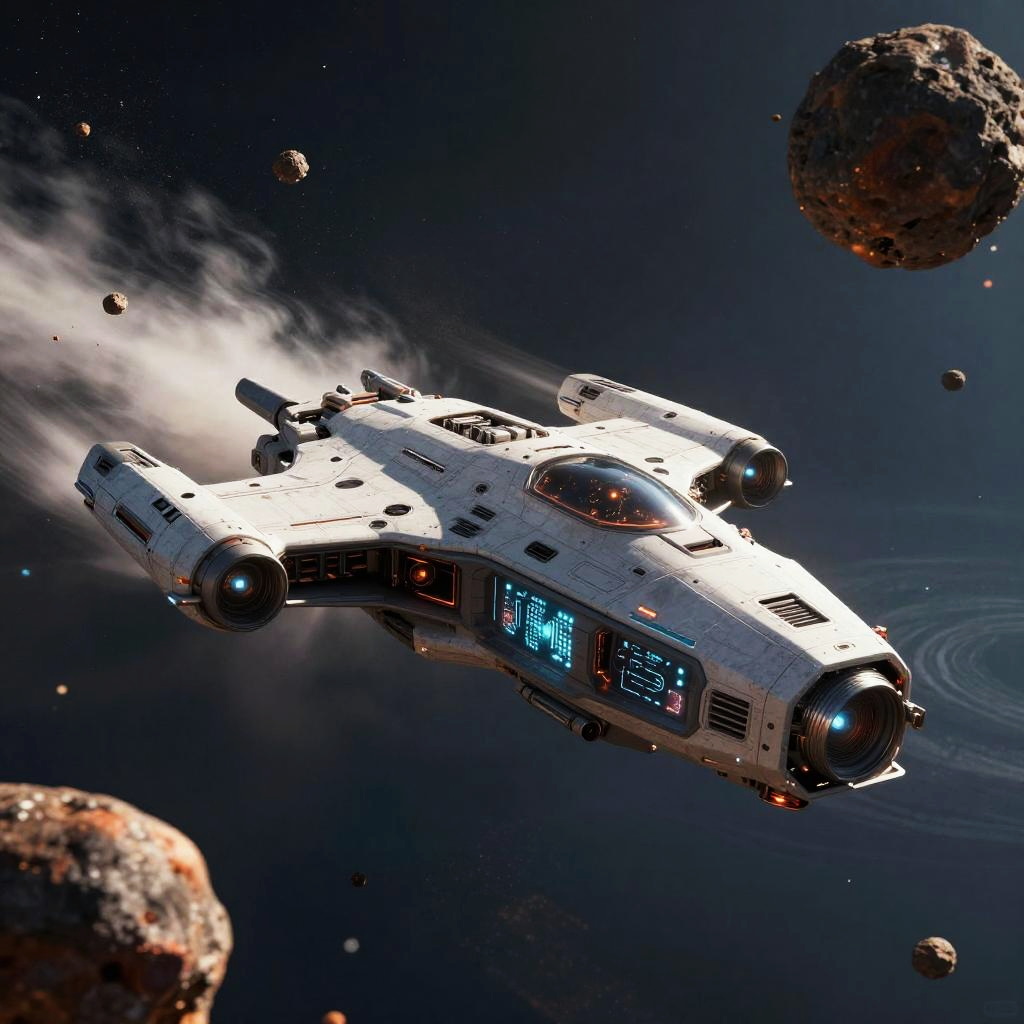 Sleek AI Spaceship in Asteroid Belt