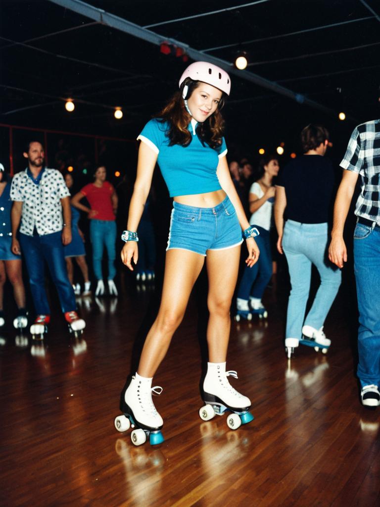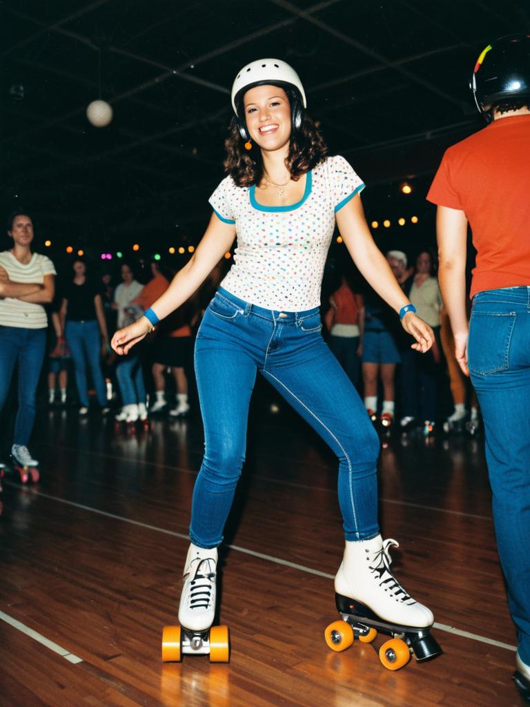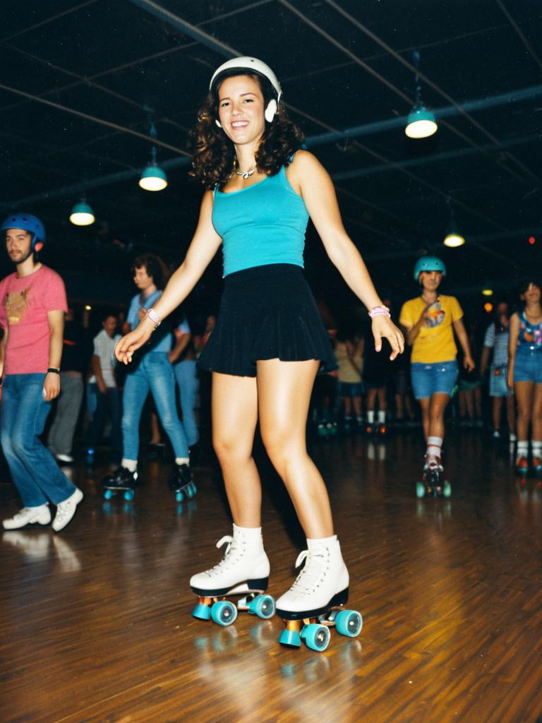 Woman in Roller Skating Outfit, candid portrait at roller disco