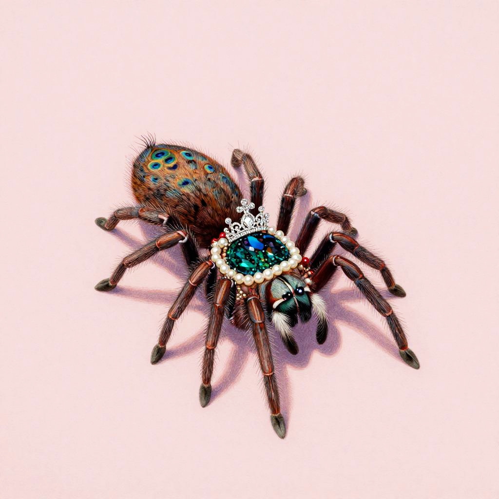 Dwarf seahorse wrapped in aquamarine bead strands, solo, no humans, animal focus, crown, jewelry, necklace, pearl (gemstone), gem accents, beads, subtle ocean teal seamless background, simple background, clean negative space, centered composition, soft gouache with crisp fine details, traditional media texture, precise linework, high detail, soft vignette, subtle shadow, balanced palette, editorial illustration, matte finish, museum-grade scan