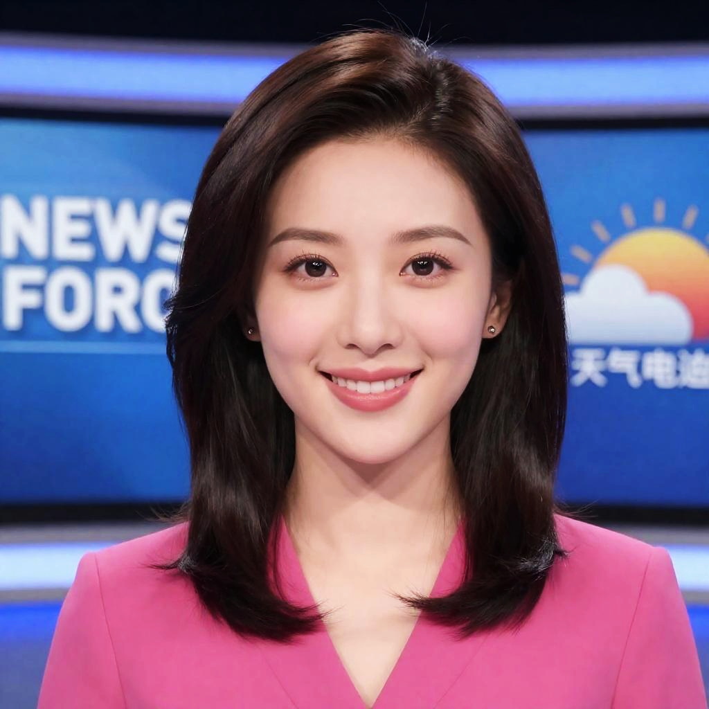 (wearing a bright pink blouse), (RAW photo, best quality), (realistic, photo-realistic:1.4), (((news caster))), (((news show))), ((looking at the camera)), (((weather forecast))), (((directly in front))), masterpiece, an extremely delicate and beautiful, extremely detailed, 2k wallpaper, Amazing, finely detail, extremely detailed CG unity 8k wallpaper, ultra-detailed, highres, beautiful detailed girl, extremely detailed eyes and face, beautiful detailed nose, beautiful detailed eyes, perfect anatomy, smiling