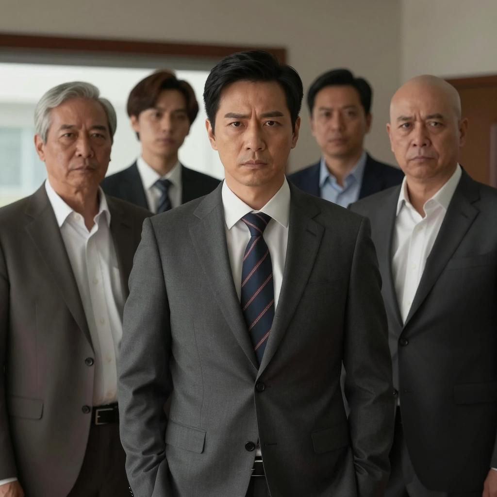 Serious Men in Suits in Dim Room
