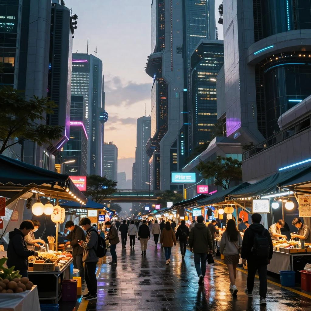 Celestialpunk Market with Alien Creatures