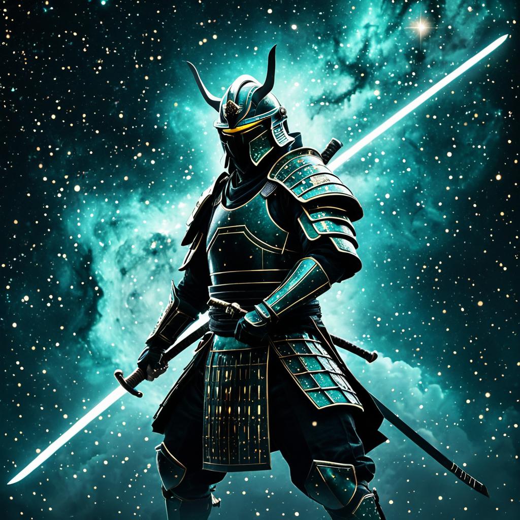Full body portrait of an anime owl ronin, wearing traditional samurai armor, mystical atmosphere, soft lighting, intricate details, flowing lines, art nouveau influence, ghostwhite color tone