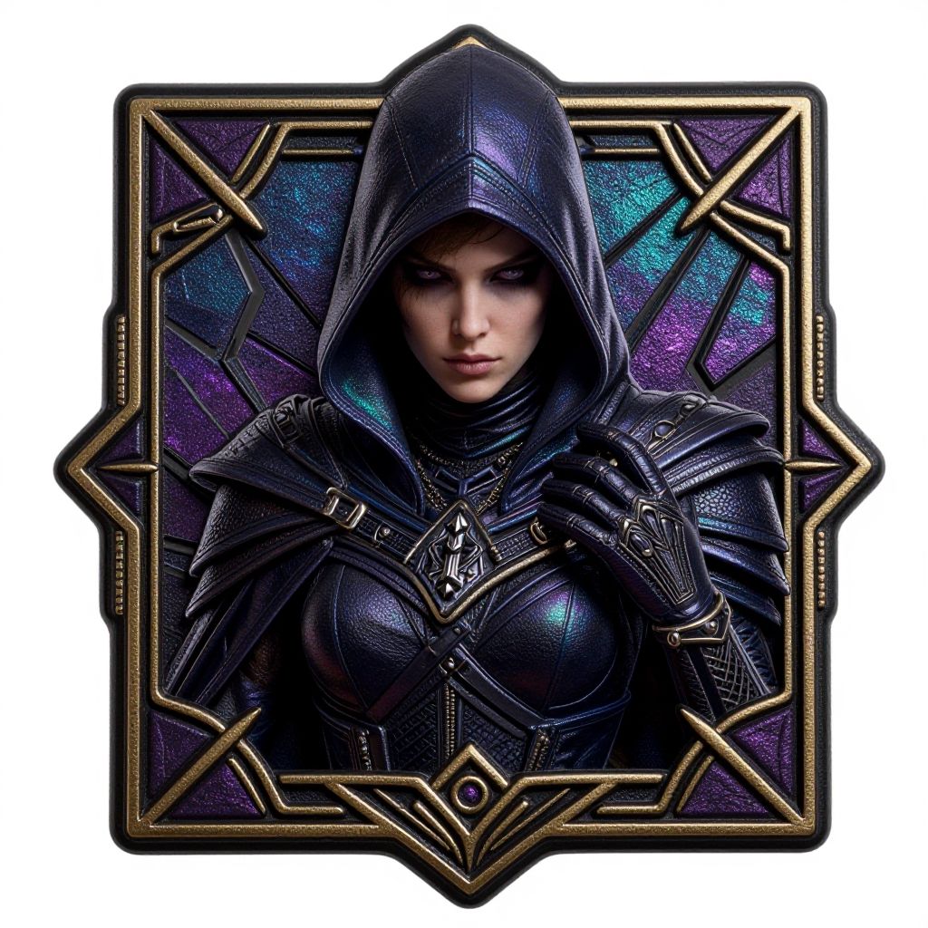 Line art trinket depicting a Shadow Assassin - A stealthy and lethal warrior capable of melding with shadows and striking unseen. Irene Sheri, natural, shimmering, vibrant, gothic, rpg, 1400ad, ultra detailed, detailed, immersive, reminiscent of high fantasy RPG games, HD, masterpiece, best quality, hyper detailed, super realistic, perfect face, perfect hands, award-winning, professional, breathtaking, linquiveragloomy Bayouunusual weatherart deco style . geometric shapes, bold colors, luxurious, elegant, decorative, symmetrical, ornate
