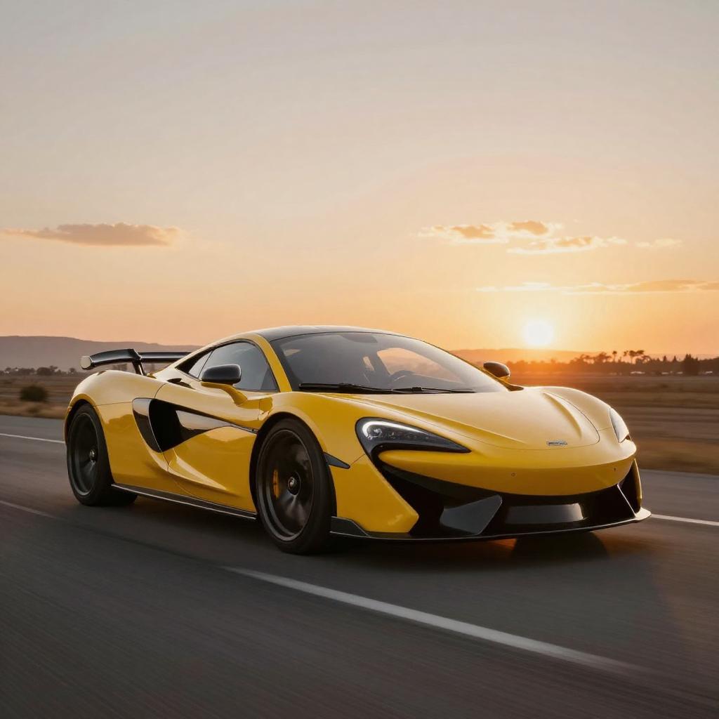Photo of a supercar, 8k uhd, high quality, road, sunset, motion blur, depth blur, cinematic, filmic image 4k, 8k with [George Miller's Mad Max style]. The image should be [ultra-realistic], with [high-resolution] captured in [natural light]. The lighting should create [soft shadows] and showcase the [raw] and [vibrant colors]
