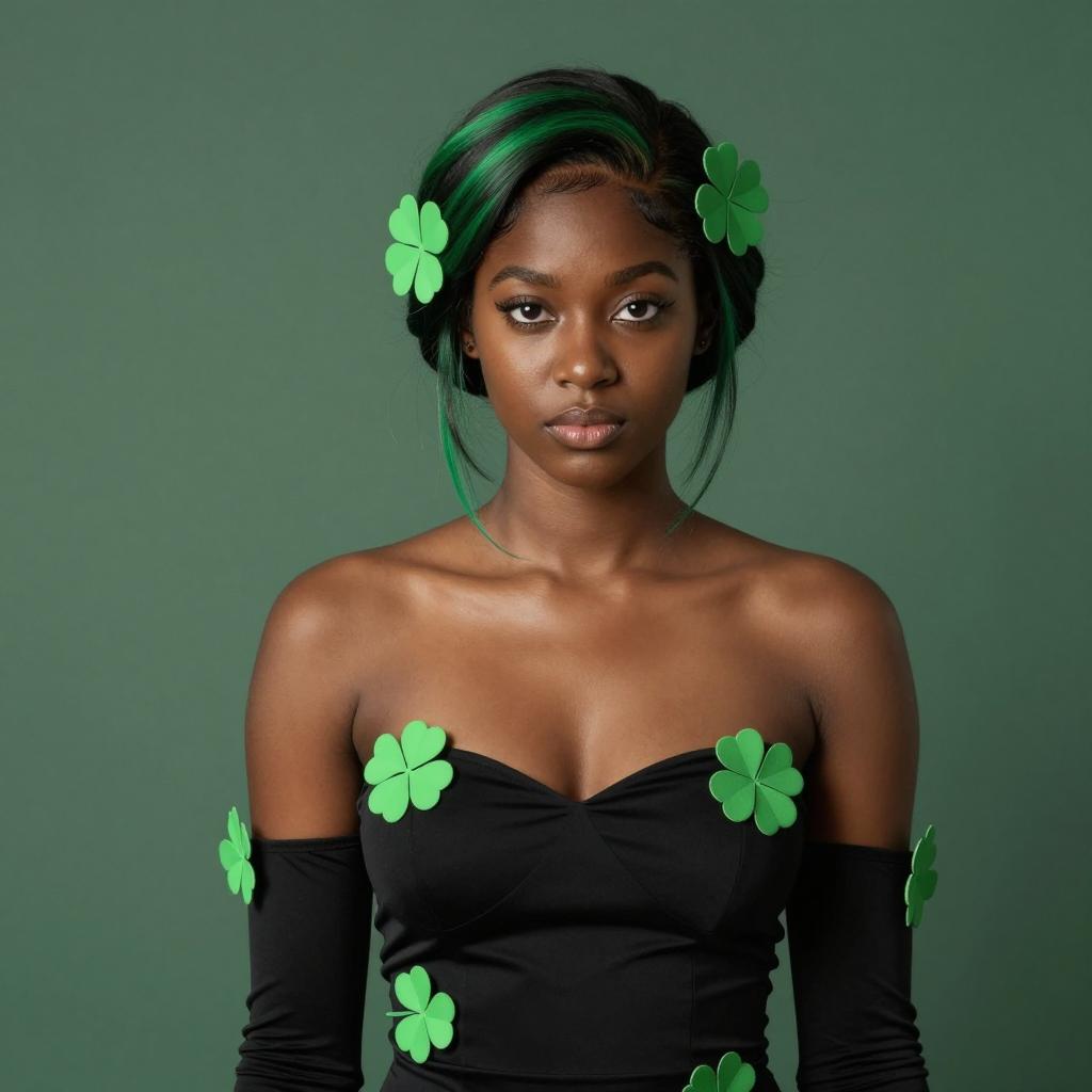 Elegant Dark-Skinned Girl in Green Dress