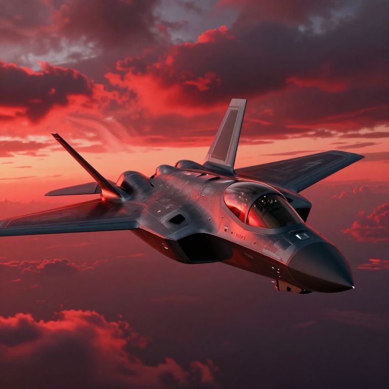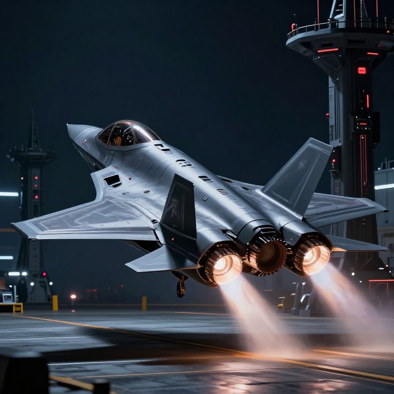 Futuristic Stealth Fighter Night Takeoff