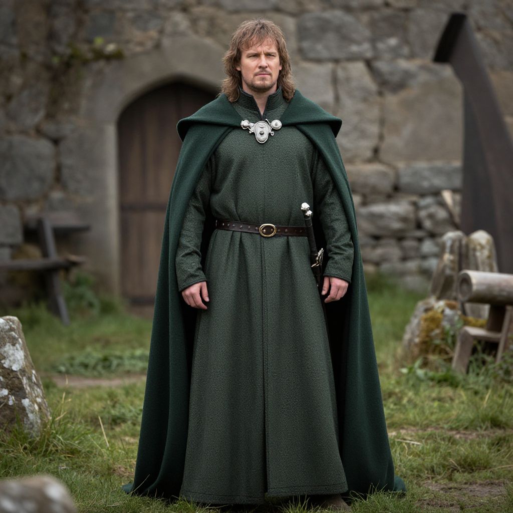 Last Kingdom Uhtred Costume, man in a long robe and a green cape