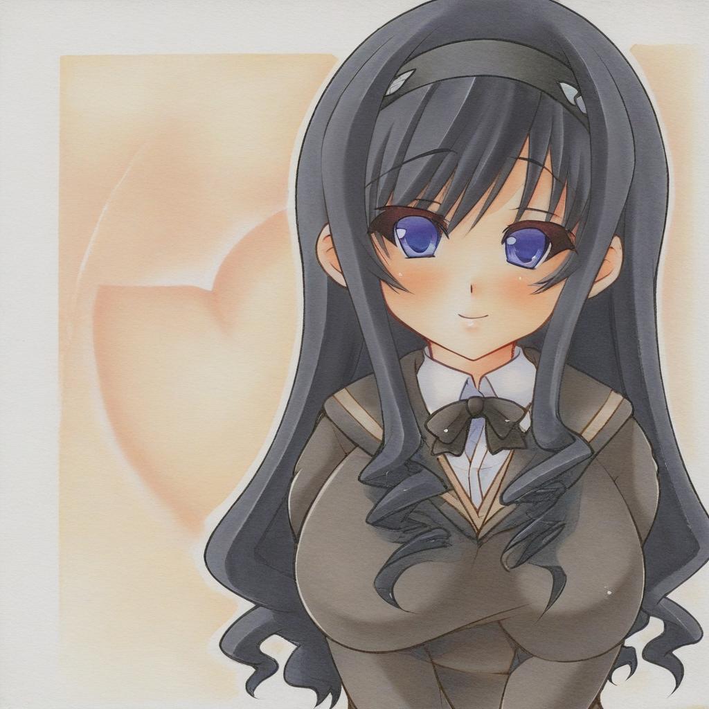 Morishima haruka, amagami, 1girl, blue eyes, long hair, black hair, hairband, large breasts, kibito high school uniform, kibito high school uniform, by artist yutakasan-love, leet
