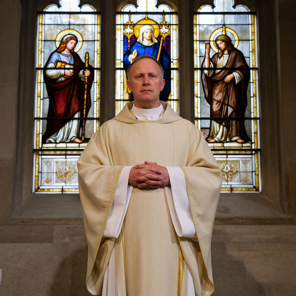 Vicar by Stained Glass Window
