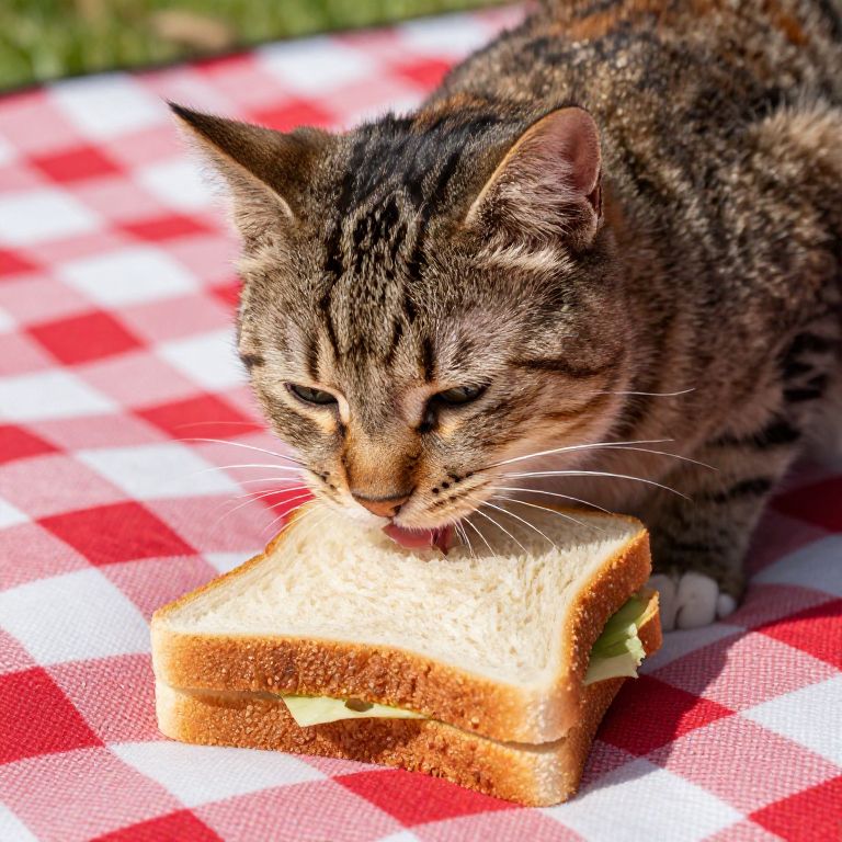 Cat Enjoying Picnic Sandwich