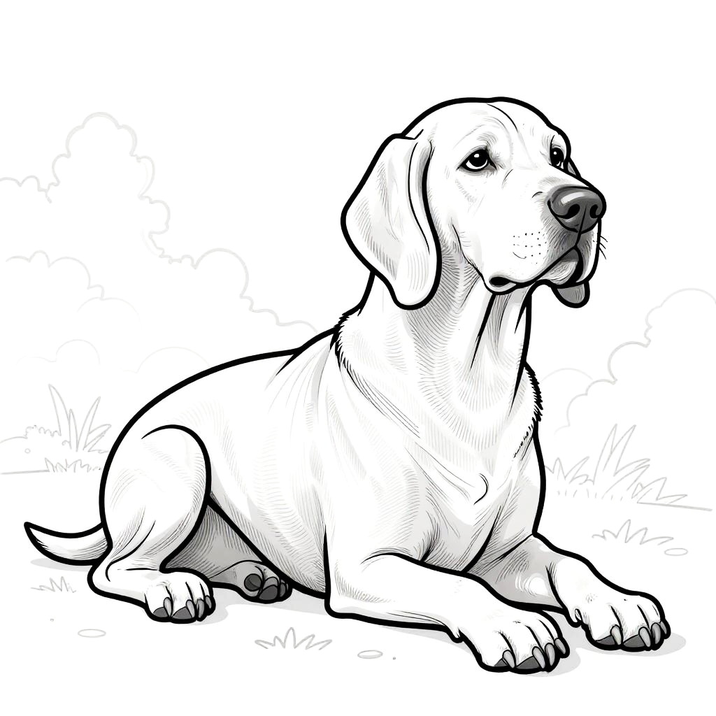 Artistic bloodhound coloring pages displaying the bloodhound in a relaxed pose, detailed with flowing lines emphasizing its droopy skin and wrinkled features, alongside abstract background elements to inspire imaginative coloring projects.