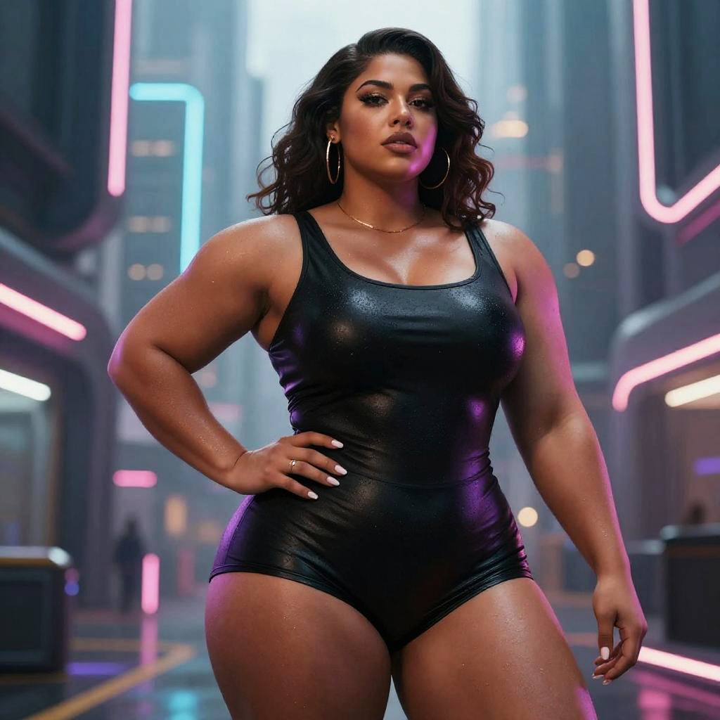 Giga Chad Woman in Futuristic City