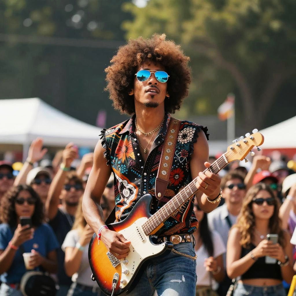 Black Woman Rocking Electric Guitar